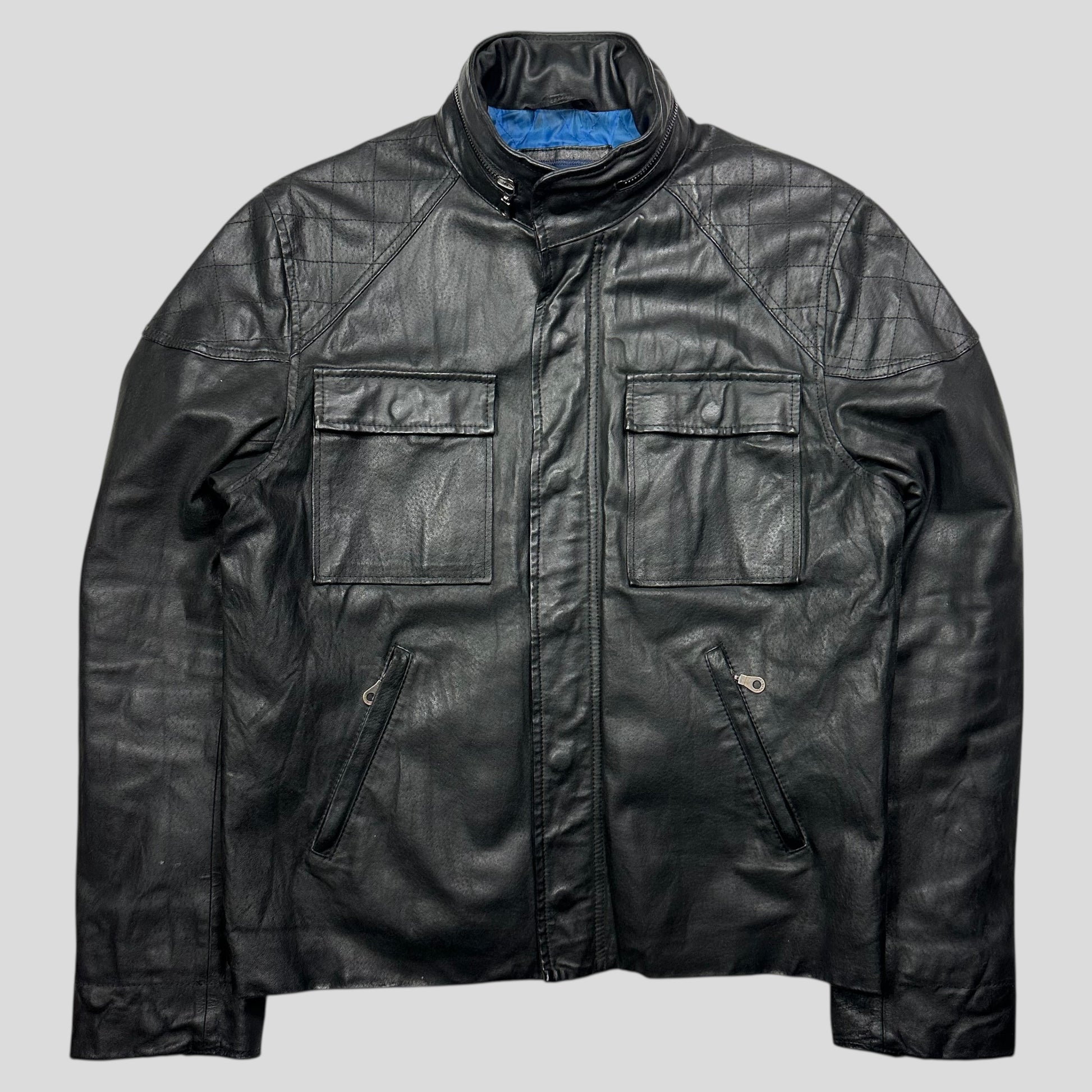 Kathrine Hamnet 00’s Nylon Hood Quilted Leather Moto Jacket - M